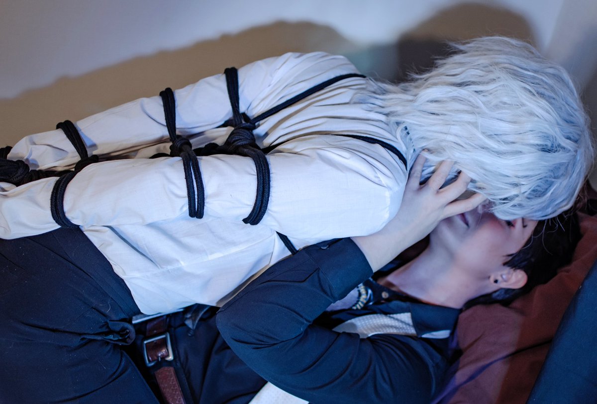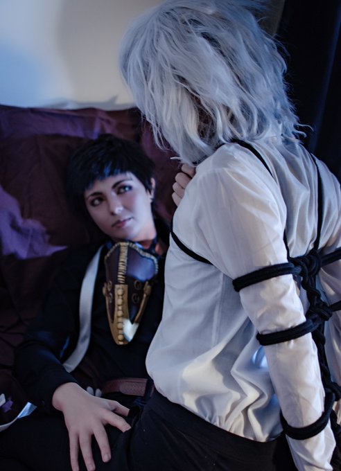 More on my insta but you get the slightly spicier ones here 🥵 Thank you @holygrailcos for taking pictures of me and your tied up partner (now fiance) @TeriChickiPizza #overhaul #kaichisaki #overshiggy #bnha #myheroacademiacosplay #shibari #shibaricosplay