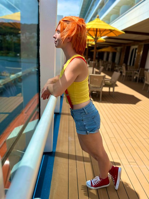 Enjoying the ocean breeze 🌊🛳️☀️ Wig from @ArdaWigs styled by me Outfit and shoes compiled from Amazon/Kohl’s/Walmart Photo by @CobaltJustice #cosplay #cosplayergirl #cosplayer #cosplaycruise #cruise #Pokemon #misty #water #gymleader #PokemonMasters #pokemoncosplay