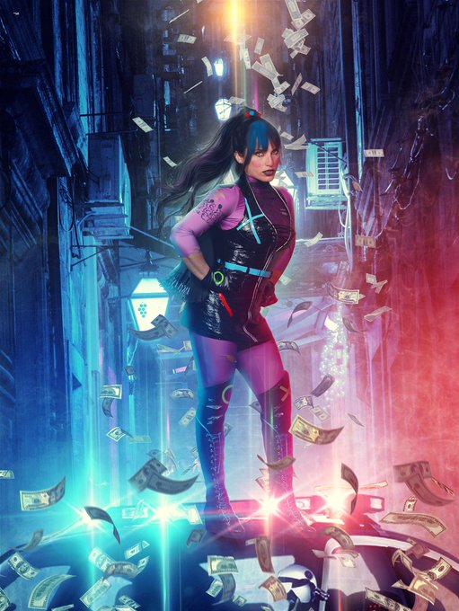 I love cosplaying her so much! This DC Comics Punchline composition by @rahalarts is pure 💜🖤 the details that he puts into his work…check out the glass! 👀 #punchline #dccomics Character design @JorgeJimenezArt @DCComics I wanted to share on here first! 💜🖤