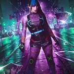 Cosplay inspired by Punchline: The Gotham Game 1 cover by @tintanega 💙🖤composition. I love cosplaying her so much!!!!! #punchline composition Gyarmati Sandor #dccomics She is coming in hot 🔥 suit design @simcosplay