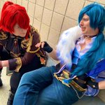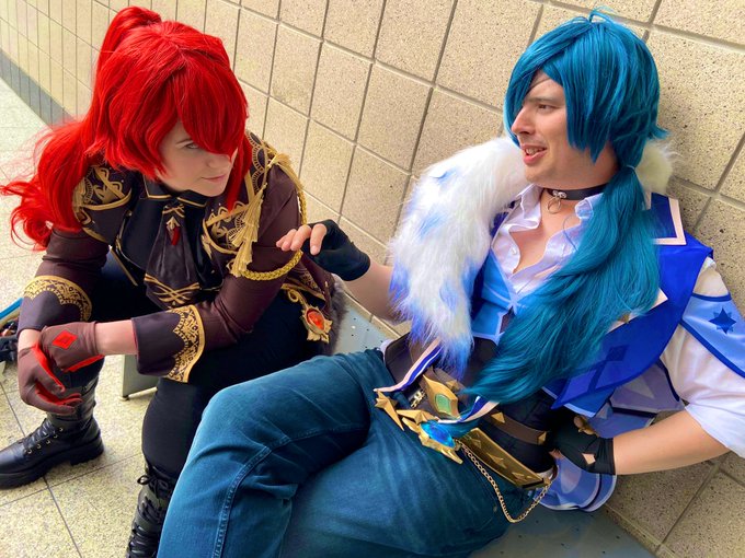 Talking tactics Diluc: @Scarlet_beauty8 Kaeya: Terra Photographer: @Krimson_Kumiho #GenshinImpact #GenshinImpactcosplay #cosplay #Diluc #Kaeya #dilucragnvindr #kaeyaalberich #ragbros