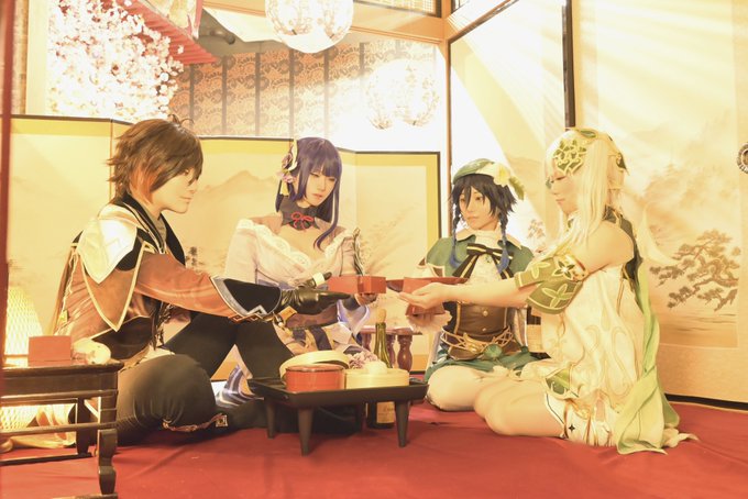 【#cosplay 】 原神 ウェンティ / 鍾離 / 雷電影 / ナヒーダ #Venti #Zhongli #RaidenEi #Nahida ┈┈┈┈┈┈┈┈ ❁ ❁ ❁ ┈┈┈┈┈┈┈┈┈ “雷神の饗宴” ┈┈┈┈┈┈┈┈ ❁ ❁ ❁ ┈┈┈┈┈┈┈┈┈ Photo: @dod_camelife 様 #GenshinImpact #GenshinImpactcosplay