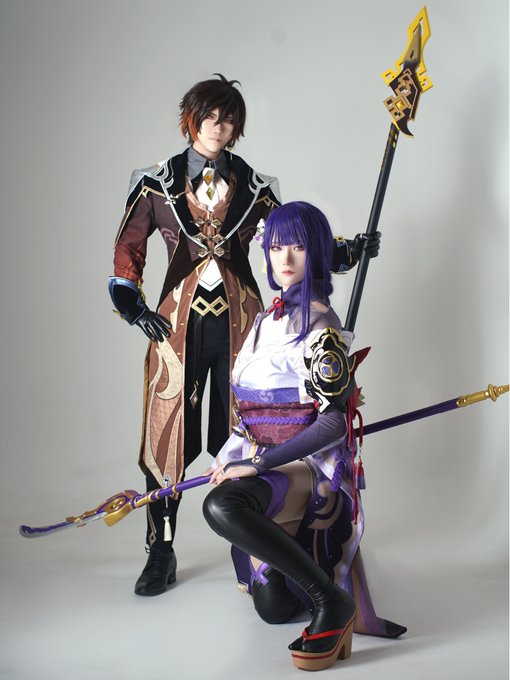 【#cosplay 】原神 鍾離/雷電影 #Zhongli #RaidenEi . 『武神』 . Photo: @HashiArt84 様 4K対応 tap推奨 #GenshinImpact #GenshinImpactcosplay