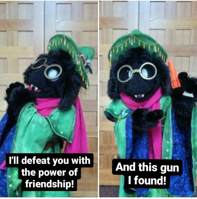@UnderTale y'all know I had to make the meme a reality. 😤 Still on that Chapter 2 hype. Tomorrow's the big day!! #cosplay #undertale #deltarune @tobyfox #ralsei