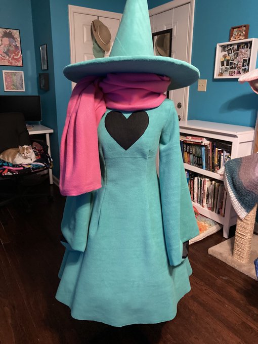 Almost ready! I'll be wearing this to AAC this year and Halloween! #DELTARUNE #Ralsei #cosplay #AAC2021 #anotheranimecon #Halloween #costume #knitting #3dprinting #embroidery