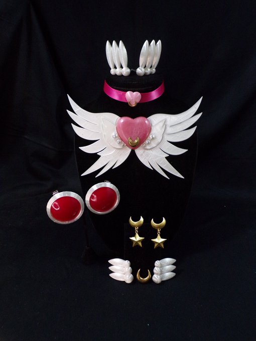 Hot off the presses! Our new #SailorMoonEternal cosplay set! It includes everything you see here. (The 2nd feathers are for the glove cuffs. Did you ever notice them?) Link in comments if you want them. #Etsy #sailormooncosmos #cosplay #sailormooncosplay