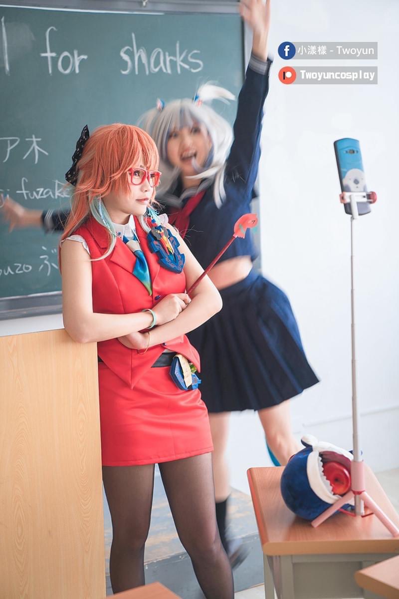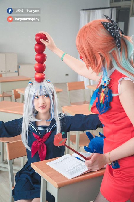 Having Japanese class with teacher Kiara~! Kiara 玉米 @din_coni Gura 小漾樣 @7woyun Painting designer Yunarun @yunaree #hololive #hololiveEN #Kiara #Gura #Gawrt #artsofashes #sametori