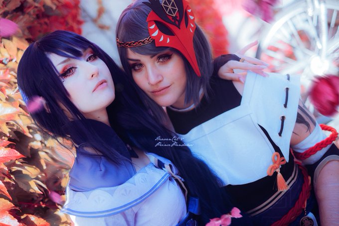 I can't post this in Inst :c Si, first look on our Baal/Sara outfits! @Inikatsu #cosplay #GenshinImpact #genshin #genshincosplay #kujousara #sara #RaidenShogun #eisara #Baal #RaidenEi #sarabaal