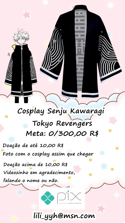 Então, para quem não sabe, eu sou cosplayer e quero muito fazer a DEUSA da Senju. Se não puderem ajudar doando, vão de RT que ajuda bastante <3 #Cosplay #SenjuKawaragi #Senju #TokyoRevengers PS: Prometo bater muito nos Haters do Mikey com esse cosplay ;-;