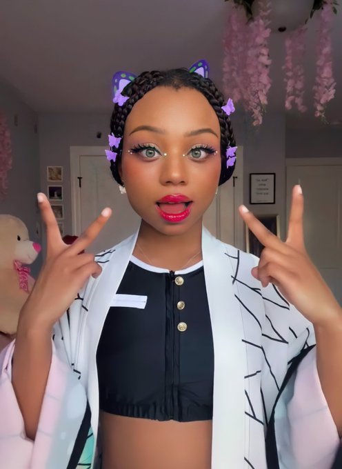 Are there butterflies in my stomach? Is that what people call ‘love’? 💜💙Happy Valentine’s Day! 💙💜 Cosplay| Kimetsu No Yaiba | Hearts Desire #童磨 #上弦の弐 #童しの #胡蝶しのぶ #Douma #Shinobu #DemonSlayerSeason2 #DemonMoonWeek2022