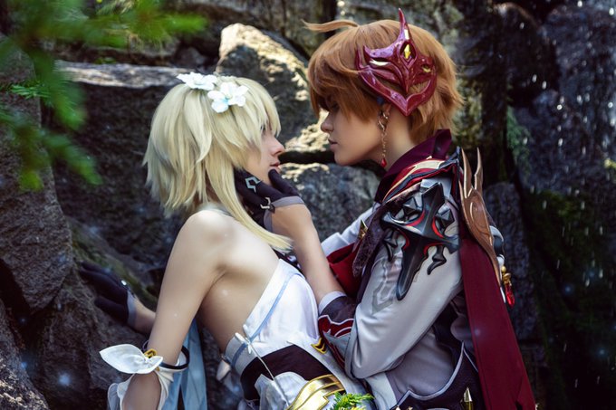 Childe x Lumine near the waterfall 👀 I'm in love with this picture 😍 Costumes by @dokidokicostume Childe - @kiyu_cosp #Chilumi #ship #GenshinImpact #miHoYo @miHoYo #Genshin #genshinimpactfanart
