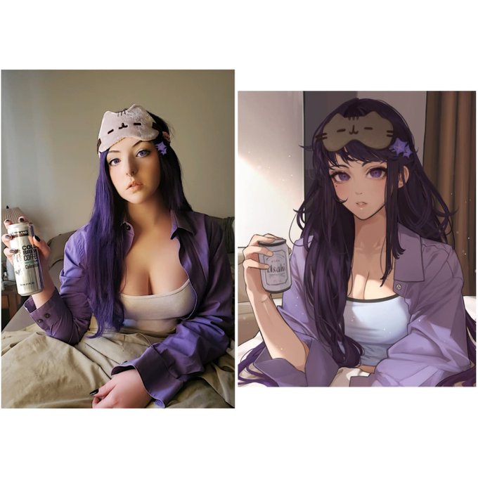 Sleepy 💜💤 Recreated @lumiphi_art 's Baal fan art☺ She's holding a beer in the artwork but I'm sober so I chose to model with a can of cold brew #supportartist #artcosplay #cosplayart #cosplay #genshinimpactcosplay #genshinimpactart #genshinimpactfanart #Baal #GenshinImpact
