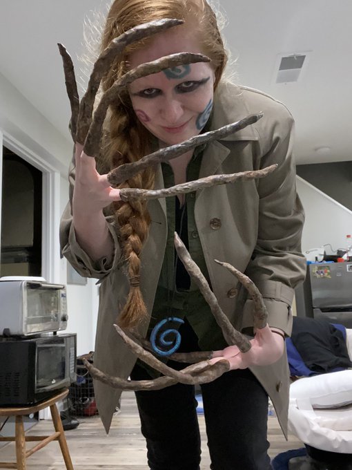Attended my all-store meeting / costume party as the Distortion from TMA, fingers and necklace are hand made ;) #themagnusarchives #seemedfitting #themagnusprotocol #horror #podcast #cosplay