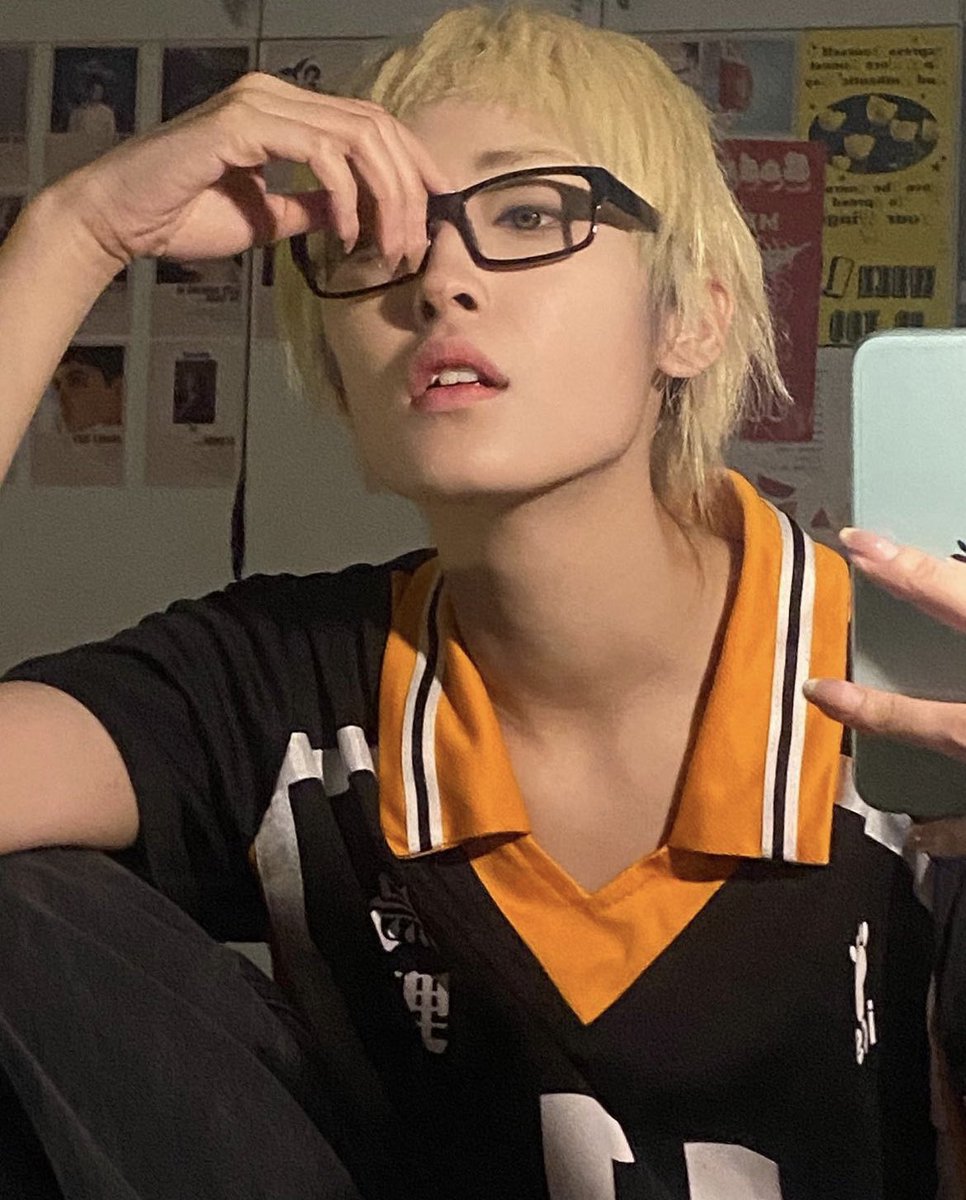 — peakstagram 📸🤍 ig : pieckkuc0s 🏐 #tsukishimakei #hikyuu #hikyuucosplay #tsukishima #tsukishimakeicosplay #cosplay #volleyball #PeakBNK48 #BNK48