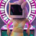 I rlly like how this arcade game framed my computer head!!! 💖🖥️📺✨🌟🎮 📸: shutterbug_shorty on insta #colossalcontexas #tvhead #computerhead #cosplay