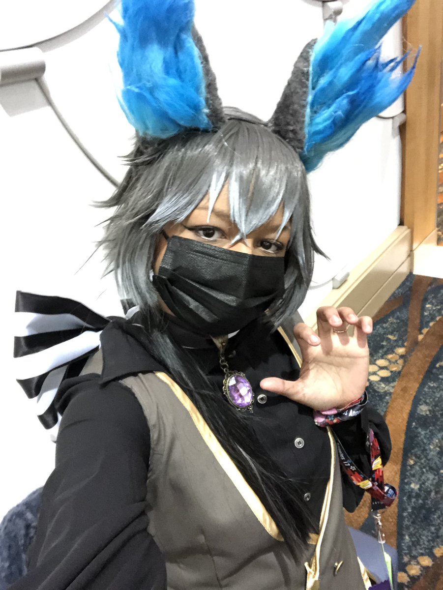 I saw #twst_english download on my phone and it reminded me I forgot to share my Grim Cosplay from ALA! Hope to show it off with teeth on TikTok in the future! 🥰 #ツイステ #ツイステファンアート #twsten #twistedwonderland #cosplay
