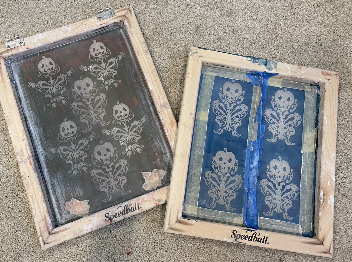 Since I get asked about my Pomefiore screen printing a lot, here’s a pic of my silkscreens! I probably won’t put a tutorial out on the process until I’ve really perfected the process, but these babies have printed so many apples 😂 #cosplaywip #twst #twsten #twistedwonderland