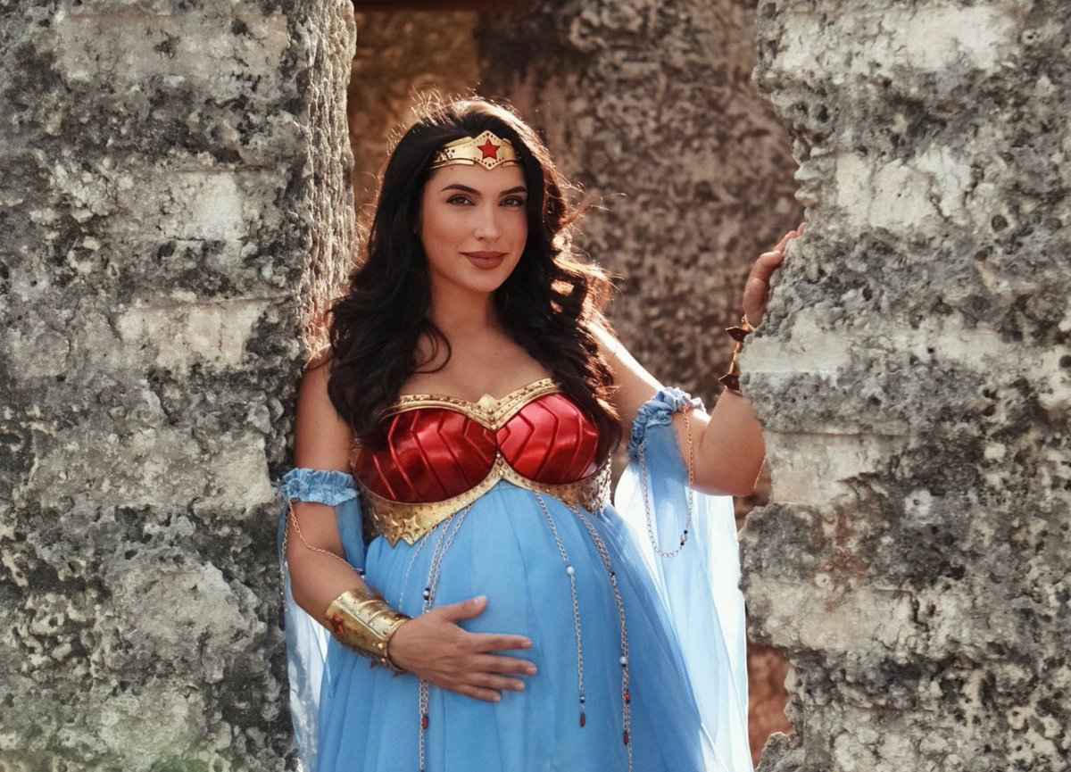WonderwoMOM ✨ So happy to be able to cosplay as #wonderwoman pregnant with this custom design TeamKyonLee made for me. 🥹 This is the last cosplay I’ll be doing with my belly, as I’m due soon. ❤️It was truly magical & my husband did a great job 📷 Happy week wonders.