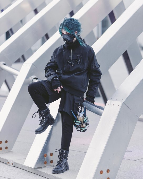 GENSHIN x TECHWEAR 🖤⛓[Giveaway on Insta👀] #xiao #xiaomain #xiaoven #genshintwt #genshin #genshinimpactfanart #cosplaying