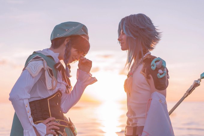 <You are my sunshine, my only sunshine. > Xiao @faeriehime Venti @drunk3nbard #xiaoven #xiao #venti #GenshinImpact #GenshinImpactcosplay