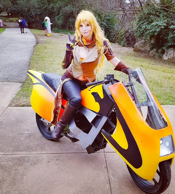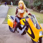 Hey, say it back 💛 Some V4 Yang as a bit of a throwback! Also featuring the first bike @mightymarkprops built #rwby #cosplay #rwbycosplay #cosplayer #yangxiaolong #motorcycle #bumblebee