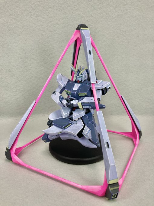 ((*゚Д゚)ゞ ハイ! MG #νガンダム [Arsenicum](和:ヒ素)完成しました 一部にフリーダムのパーツ、それ以外はMGユニコーンのパーツのみを使用し、今できることを詰め込みました( -`ω-)✧ #ガンプラ #ガンプラの画像貼るとRTされると聞いて #gunplaphoto #gunpla