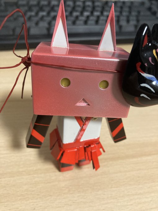 あずダンボー! 色のテストがてら作ったけど、赤が梅酢みたいになった 和風の赤の出し方研究せねばなぁ お面はジャストサイズだった! #あず絵巻