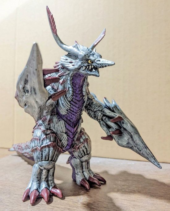 クローンライバッサー(フリジア) 元々はある科学者夫妻に造られた無害なヒナバッサーのクローンだった。しかし事故で妻を喪い憎悪に蝕まれた夫が様々な改造を施し、怪獣化。 科学者の妻が事故死した原因である「大型の車」を見境なく破壊し暴れ回る。 #あなたのソフビ紹介 #ソフビ改造 #造って遊ぼ
