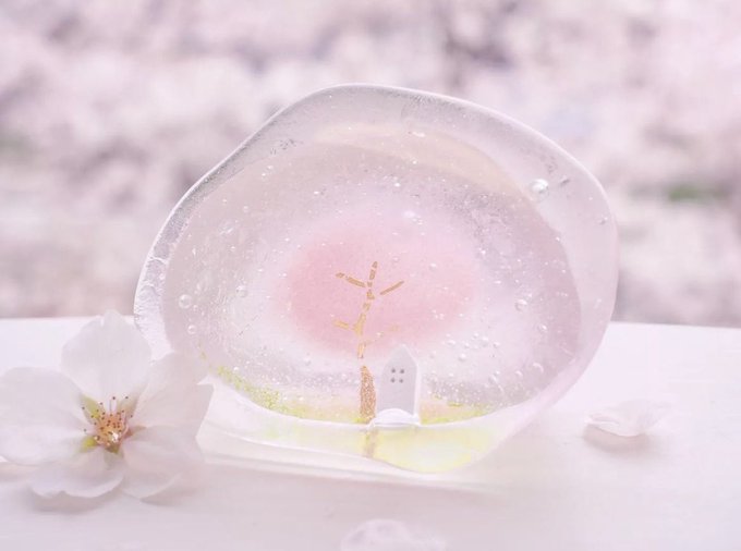 #あなたの春を待ってる作品を見せて ガラスの中の満開の桜🌸 一つ一つ同じものは無い、 一点モノのガラスのオブジェです💕 今年の蕨での展覧会 4月1日2日にも沢山販売するので、ぜひ遊びにきてくださいね〜✨✨ 埼玉県蕨市 ちいさなガラス工房 2人展