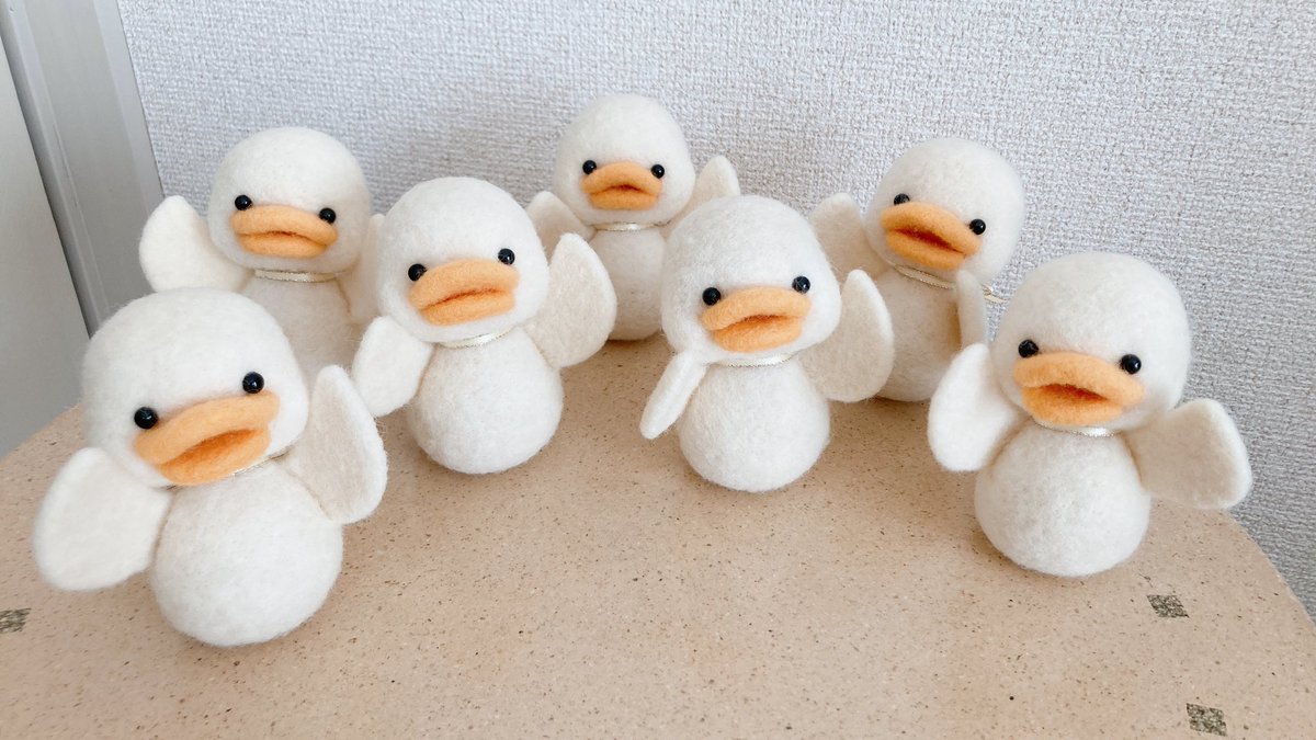 #野鳥とふくろうマルシェ に向けて✨ リーダーは、でこまる✨ このタイプは、当面、対面イベントでの販売ですが、今回はリーダーとして、いつもより大きいサイズのこの子だけが参加します。😊✨ 奈良の皆さま、よろしくお願いします。 #羊毛フェルト #Rookの仲間たち #あひる #ことりカフェ
