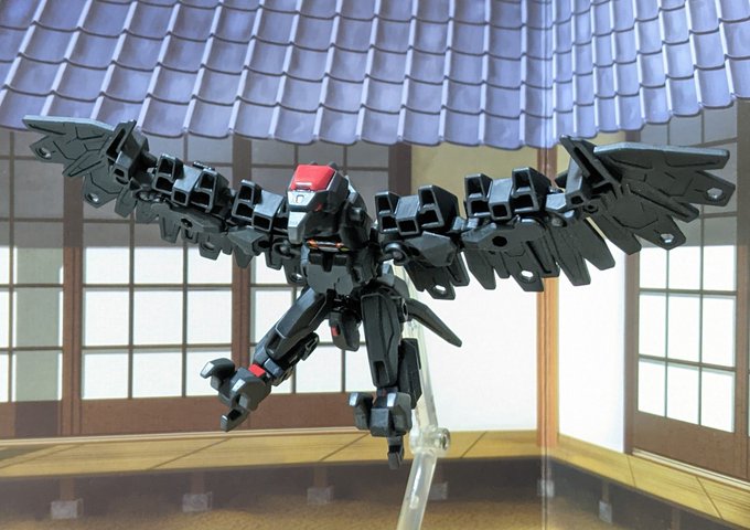 #ガンプラ カラスロボも作りました。カラスから天狗モードに変形して主人の文ちゃんの新しい翼と扇に合体しますよ。 #いいねした人全員フォローする #モデラー女子 #プラモデル #フォローした人全員フォローする #フォロバ100 #フォローバック #フォロバ #フォローRT #東方Project