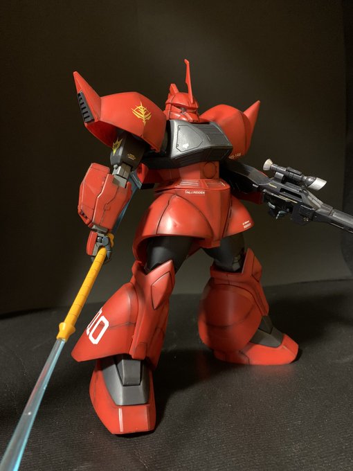 #いいゲルググの日、これはもう何でもありの気もしますが、せっかくなので以前に遊びでガンダムマーカーエアブラシで塗装したゲルググで乗っかります。ガトー専用っぽいゲルググ。 #ガンプラ #ガンプラ好きな人と繋がりたい