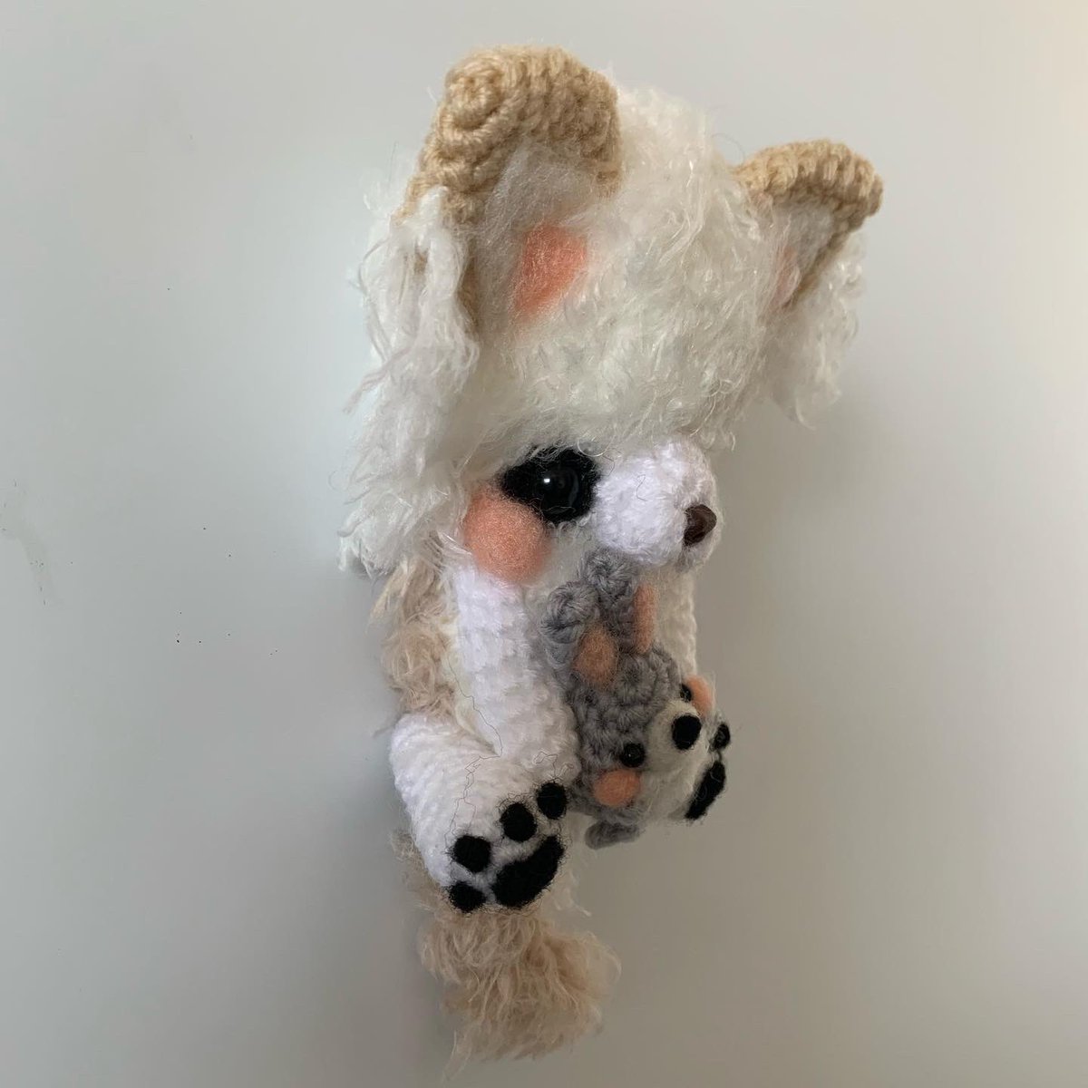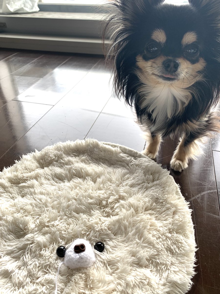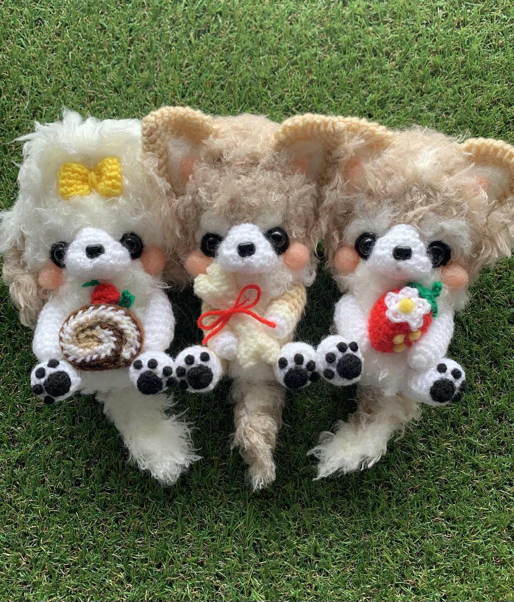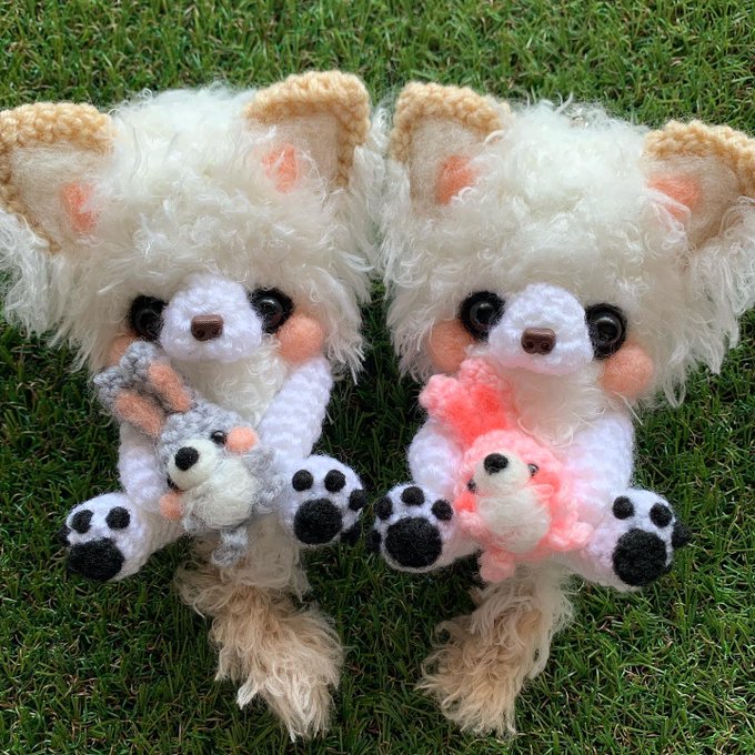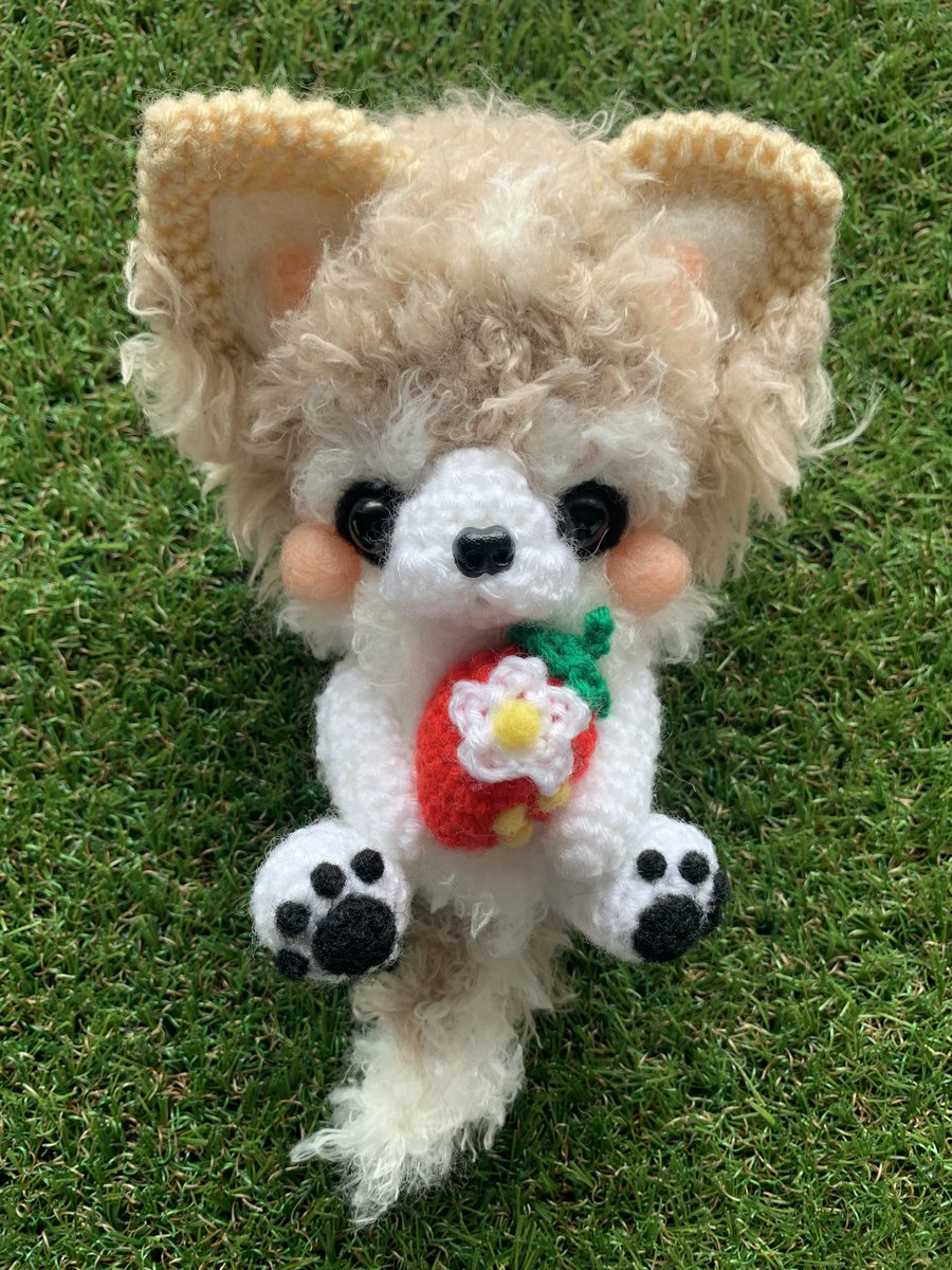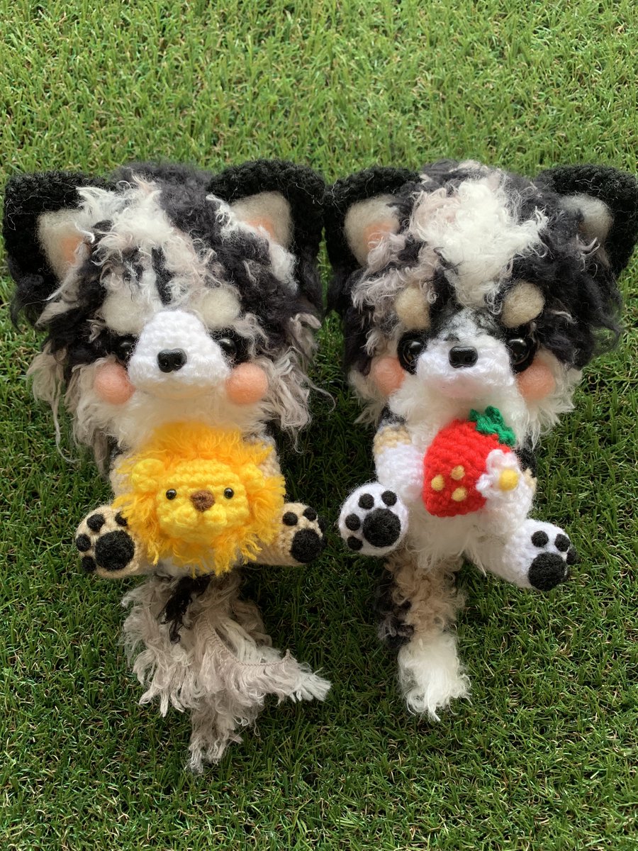 オーダーのマールちゃん😊 レギュラーサイズとキーホルダーが出来上がりました💕 レギュラーサイズは、ライオンちゃんのおもちゃとイチゴを持ちました🦁🍓 ビッグサイズも頼んで下さっているので、絶賛編み編み中です🧶 ありがとうございます🥺🙏🏻 #うちの子グッズ #あみぐるみ #ブルーマールチワワ