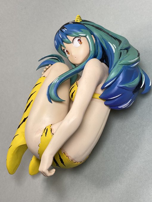 #うる星やつら2022 フルスクラッチしたラムちゃんの塗装完了しました。 髪の色を虹色にするか凄く悩みましたが、今回のイラストを参考にして塗りました。 今回は特に頑張って色塗りしたので皆さん見てくださいね〜 #フィギュア 早くアニメしないかな〜