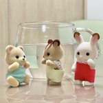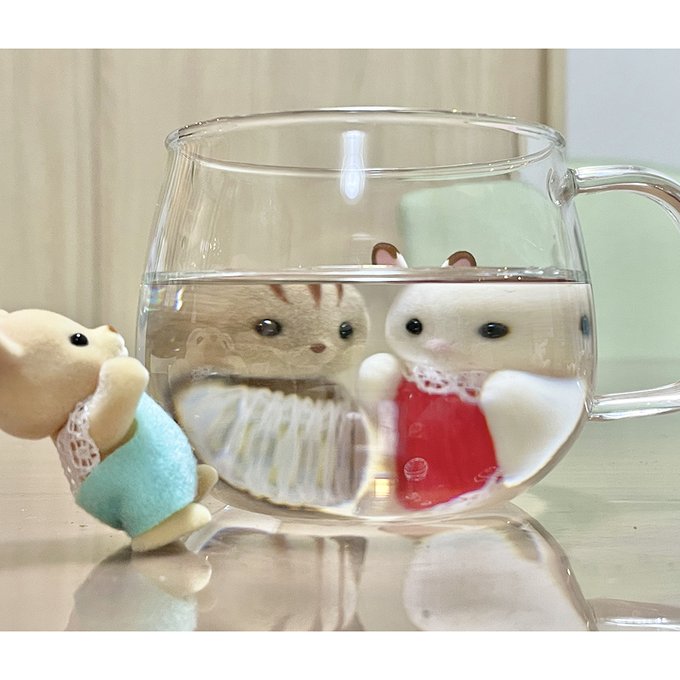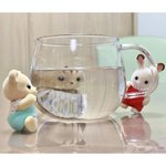 赤ちゃんたちが大きくなっちゃった!? 透明のきれいなカップがあったので、シルバニアファミリーのお人形と一緒に遊んでみました✨ お水を入れると、虫メガネみたいになって面白いですね🔍 #シルバニアファミリー #シルバニア #シルバニア赤ちゃん #カップ #おうち時間