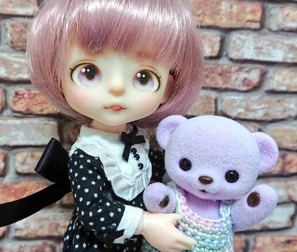 おはようございます 今朝は天気イマイチ?? 📸小さいお嬢さんと🧸 #おはドル #ノードール・ノーライフ #ハニーベア #セリアドール #うちのこかわいい #ドールオーナーさんと繋がりたい #おはよう