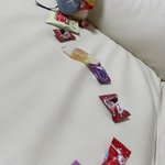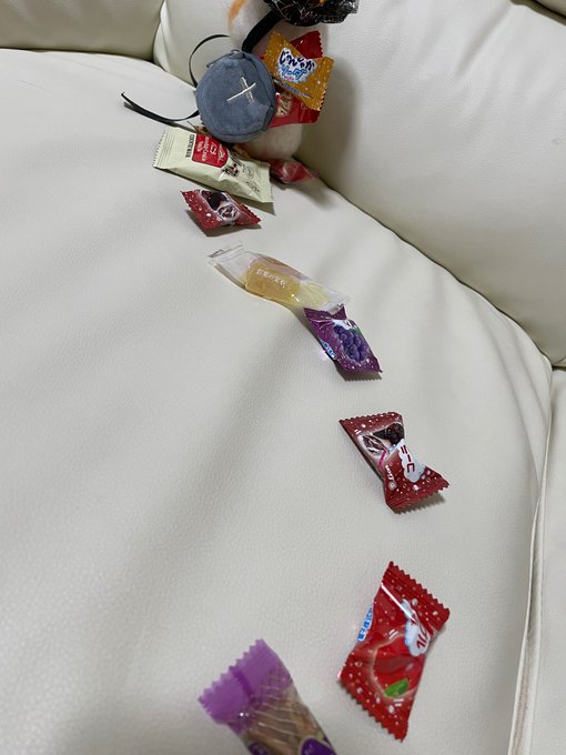 あれれっ?🤭 飴が落ちてる??🍬🍭🍫 飴をたどっていくと、 そこには見覚えのあるフォルムが。。😳 (夜に続く) #おもちの日々 #happyhalloween2022 #ハロウィン2022 #羊毛フェルト #ぬい活動 #ぬい撮り