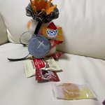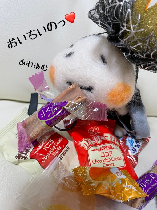 おもちからみなさまへ ハッピーハロウィン〜!🎃✨✨ お菓子もたくさん用意したそうです🍬🍭🍫♪ まだまだハロウィンは終わらない✊🏻 一緒に楽しみましょうね☺️💓 #おもちの日々 #happyhalloween2022 #ハロウィン2022 #羊毛フェルト #ぬい活 #ぬい撮り