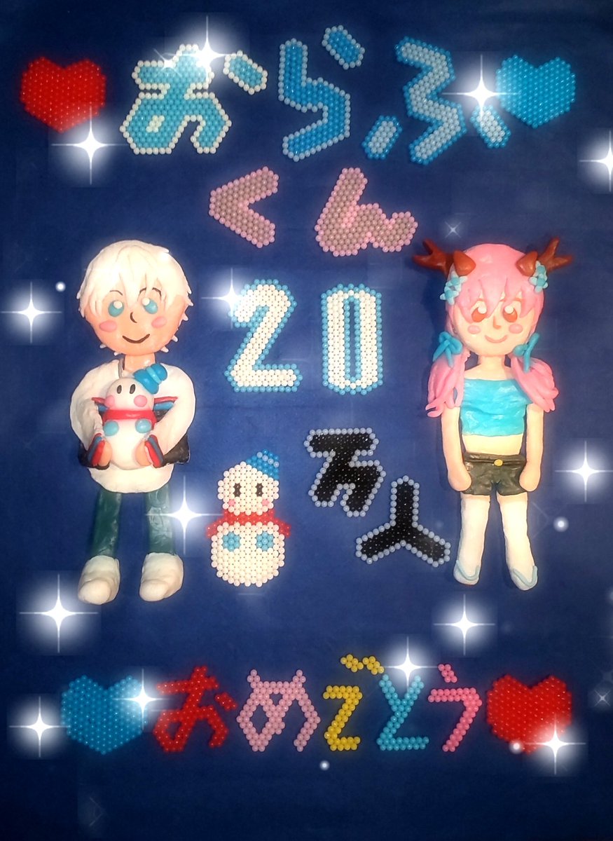 おらふくん💙 ㊗️20万人おめでと🎉🎊✨ いつも笑顔と幸せをありがと❤️ おらふくんに出会えて本当によかった❤️ 大好き❤️ これ以上の言葉見つからないけど 大好きな事伝わってるかなぁ🫣❤️ 今年中に25万人行こね😉 粘土おらふくん💙おらこちゃん😈💙他アクアビーズ #おらふくん20万人 #見るかもわからん