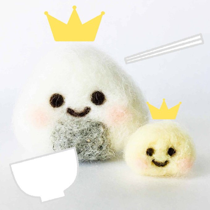火曜日です。おつかれさまです。 もう少しでお昼ごはん🍙✨ オニギリはなんだかんだ言って、ごはんの王様?なんて思いながら、王冠を乗せてみました☺️ のんびりリフレッシュして、午後も乗り切りましょう🙌 #ハンドメイド好きさんと繋がりたい #お昼ごはん #羊毛フェルト
