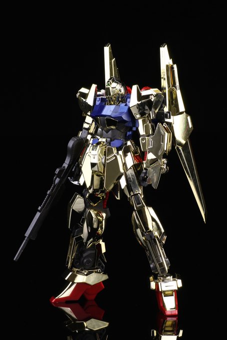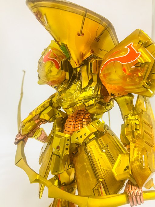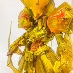 #お正月なのでめでたい金色の画像を貼る ガンダム ロック・オブ・ゴールド ボークス秋葉原ホビー天国2様の3階展示スペースに展示させて頂きました! 陰影がありつつも淡く偏光する金色をご覧いただければ幸いです。m(_ _)m