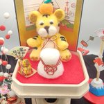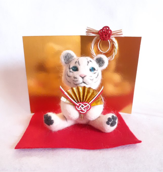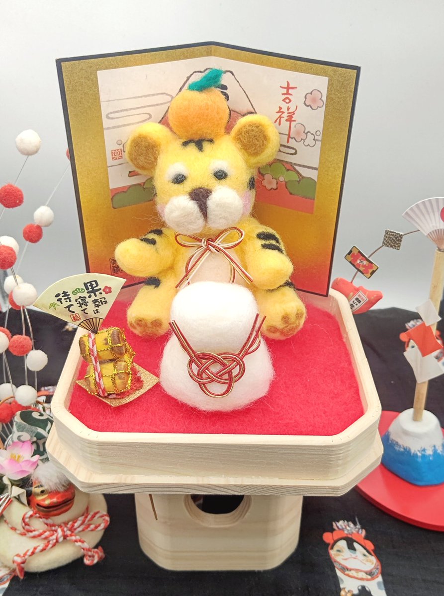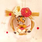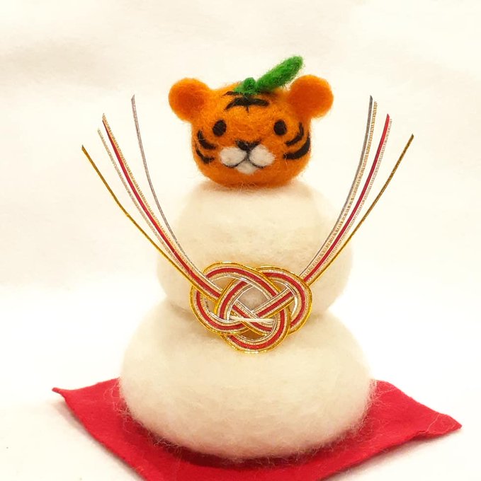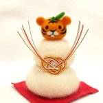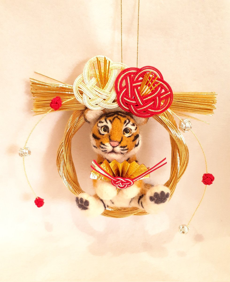 おはようございます。 今朝出来上がった虎さん。しめ飾りにすっぽり。取り外し可能なので、別々に飾ることもできます。 #羊毛フェルト #お正月飾り #minneで販売中 minne.com/items/30116063