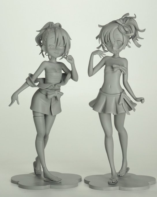 ギャルくノ一、アザミとタンポポの原型が完成しました〜 2体でひとつのガレージキットとして2月のワンフェスで販売予定です! とりまこれから型取りするのツラみ〜 #wf2023w #くノ一ツバキの胸の内