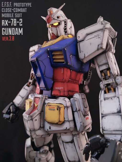 #この作品がなかったら今の自分は存在しなかったと言っても過言ではない MG ガンダム ver.3 何度雑誌見返しても汚しがうまくいかないんで我が道を往ったもの。 ・面倒なんでサフ無し ・白パーツは未塗装 ・汚しに色鉛筆使用 低コストでも愛と気合があればなんとかなります(^q^) #ガンプラ