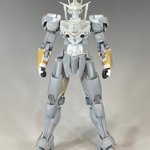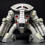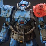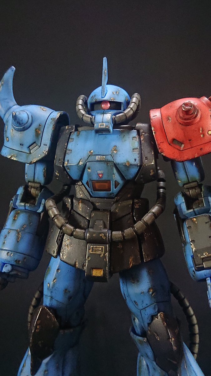 ドーベンウルフっぽい頭にしたので額当てに四角い穴がある訳ですが、頭部は潰れた形状なのでこの四角い穴からモノアイが見えるのは造形して納得。また、期せずして全体的には近藤版ハンマ・ハンマっぽい形状になった感 #夜のフィギュア撮影会 お題「フリー」 #これを見た人は真正面の画像を貼れ