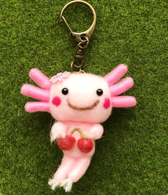 🍒NEWさくらんぼシリーズ🍒完成✨ ウーパールーパとさくらんぼ キーホルダー ハンドメイド 羊毛フェルト メルカリ mercari.com/jp/u/598280030/ #羊毛フェルト #ハンドメイド #ハンドメイド好きさんと繋がりたい #ウーパールーパー #さくらんぼ #メルカリ