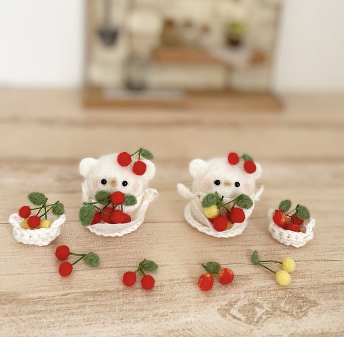“#minne100問100答 7. #制作途中をちら見せ” さくらんぼくまちゃんのさくらんぼ作り♪ Instagramのリールで動画あげてます♡ もし良かったらご覧下さい*ˊᵕˋ* #羊毛フェルト #さくらんぼ instagram.com/reel/Ce7HLJgAf…