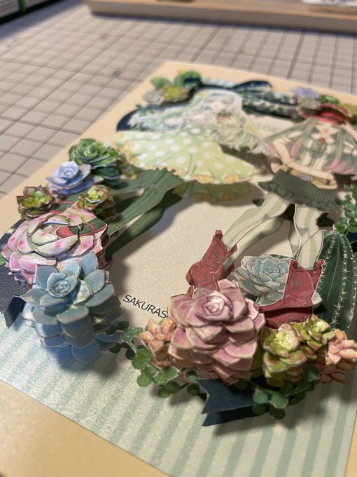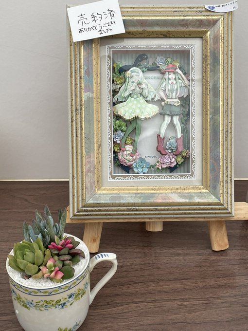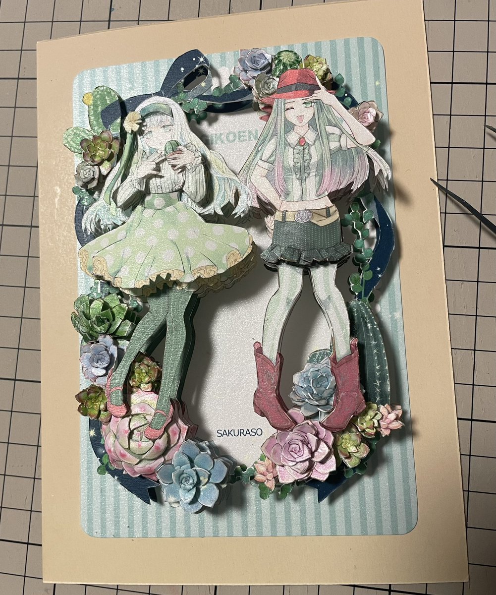 #さぼてん村イラスト展 完成しました❣️ 明日会場に見に来てくださいね✨✨✨ ポストカードで作ったのでちょっと細かいです。 余裕あったらもう一つ作ろうかな… #シャドーボックス #オリジナルイラスト