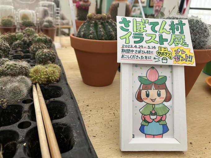 さぼてん村イラスト展に行って来ました! 平日の午後ということもあり、ゆっくり見学させてもらいましたー 今回の展示もすごく良かったです!さぼてんってたくさん種類あるんだな…w #さぼてん村イラスト展