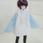 「やほ!」 夕暮れ時、ちょっぴり涼しくなったので浜辺へ🦈 流木で遊んだり、岩場を探検したり…… 風が強いから転ばされないように気をつけて! #デスクトップアーミー #さめパーカー #サメは良いぞ